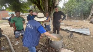 Durante la jornada, además de la entrega de alimentos y suministros esenciales, se realizó una olla comunitaria en la que se preparó un tradicional sancocho de pollo, generando un espacio de unión, apoyo y esperanza para la comunidad afectada.